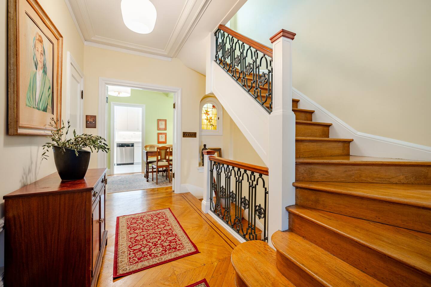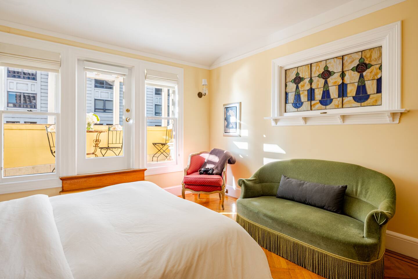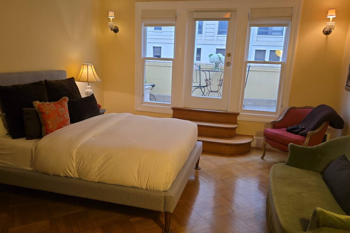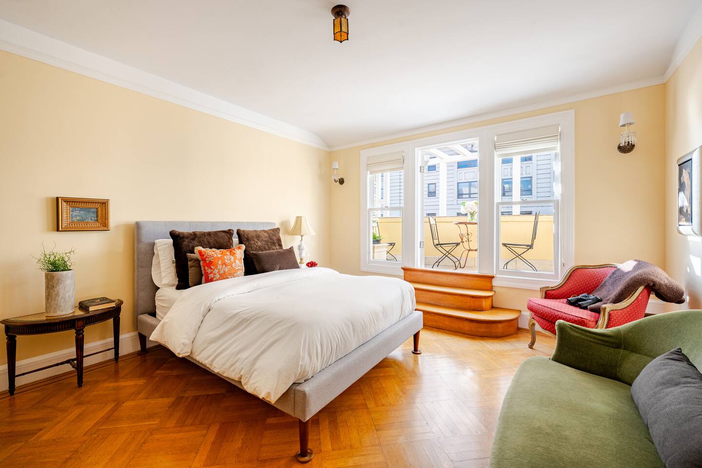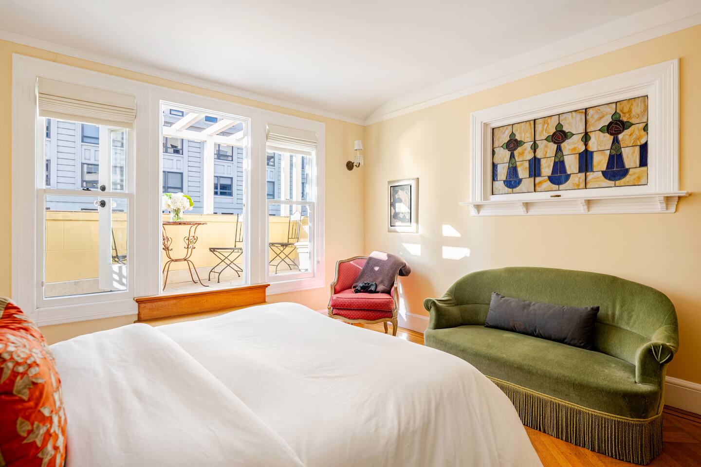 One of three Nob Hill mini mansions, the Dollhouse residence offers the opportunity to experience your very own piece of history in the comfort of the romance and nostalgia of old San Francisco. Located a block from the historic Huntington Park (ideal for Sunday picnics), Grace Cathedral and Masonic Temple, this one-of-a-kind Nob Hill gem is ideal for entertaining guests. The home is surrounded by San Francisco's finest hotels: Stanford Court, Mark Hopkins, Huntington, Fairmont, and the Ritz Carlton and was designed by Mario Rocca the original proprietor of the Sir Francis Drake Hotel. This charming four-story home offers hardwood floors throughout with a cozy living room, formal dining room, kitchen,dishwasher/oven/refrigerator, four bathrooms, four bedrooms, bay windows, stained glass throughout, and a terrace facing the San Francisco Bay boasting a bird's eye view of Alcatraz and watch the beloved iconic Trolley clang clang up the hill. For those who do not require the entire property, the Dollhouse is also available on an individual room basis, only when the owner is on site.